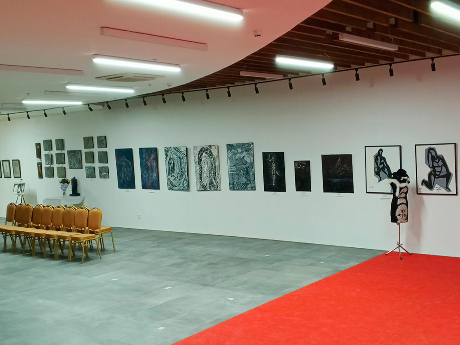 а) Оригиналы произведений на стене или подиуме;